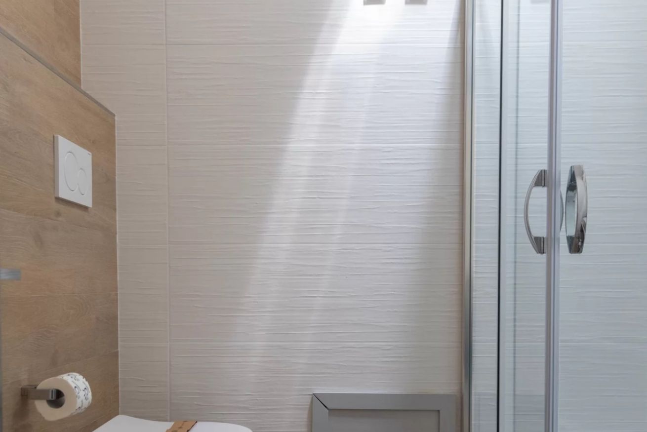 • 1 Bagno con impianto di aspirazione, composto da: lavabo, wc, bidet e doccia.