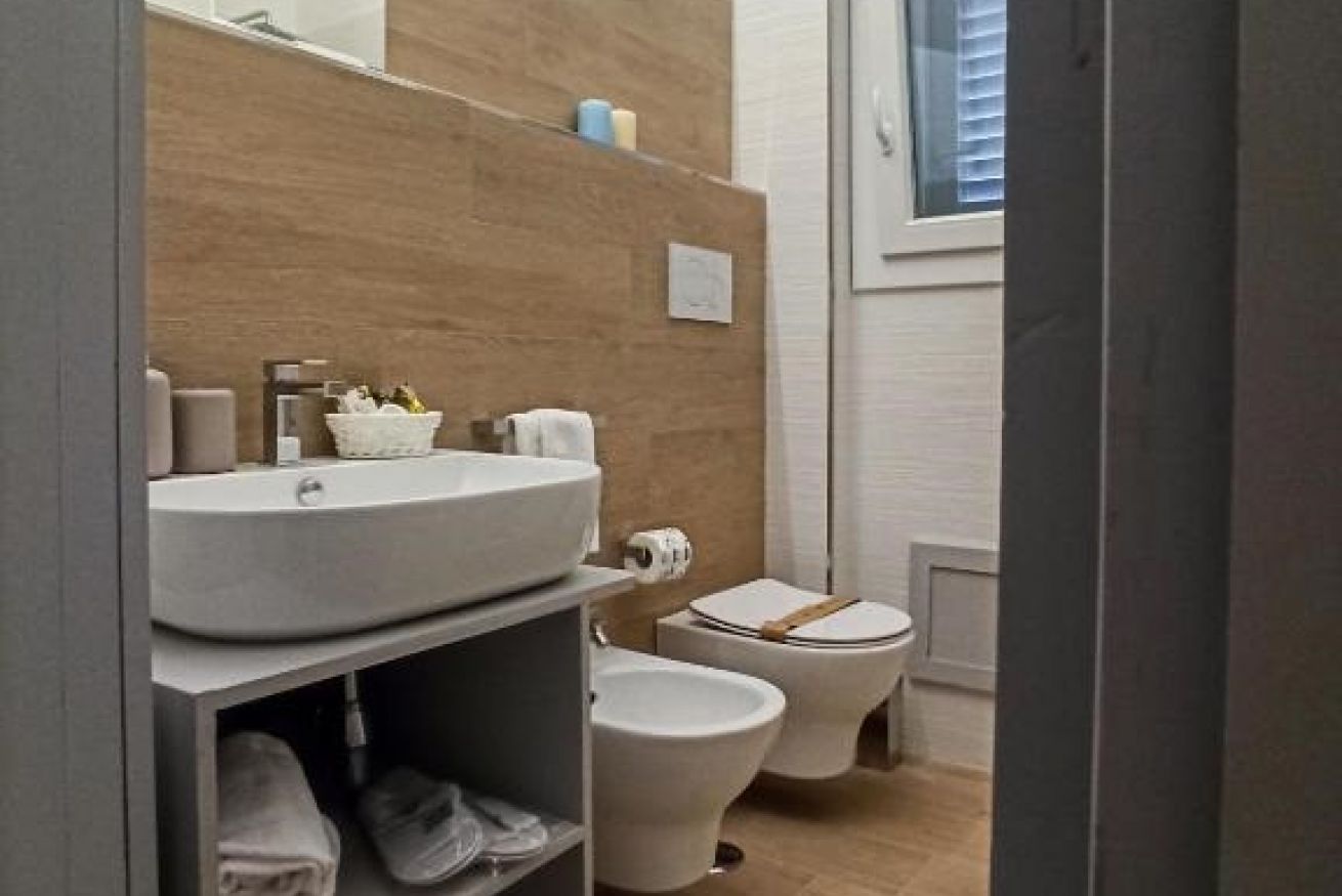 • 1 Bagno con finestra, composto da: lavabo, wc, bidet e box doccia;